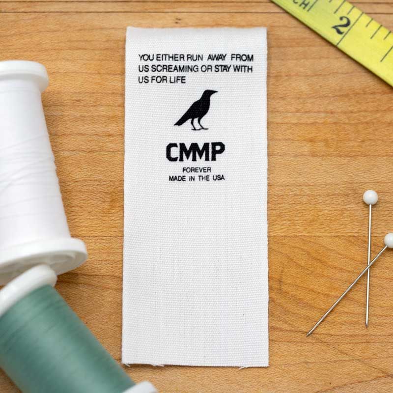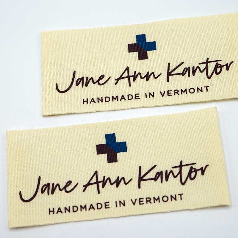 Our custom cotton labels for clothing are printed onto our black, white or natural (tan) cotton twill material. We use a screen printing process to transfer your design onto the cotton clothing labels in up to 4 colors. These are biodegradable clothing labels ideal for natural clothing brands. PLEASE NOTE: The cut ends of custom cotton labels are unfinished and may fray. For this reason, we advise clients to select the End Fold style whenever the ends of your labels will not be sewn into the seam of your products. This way, the unfinished edges are neatly tucked away.